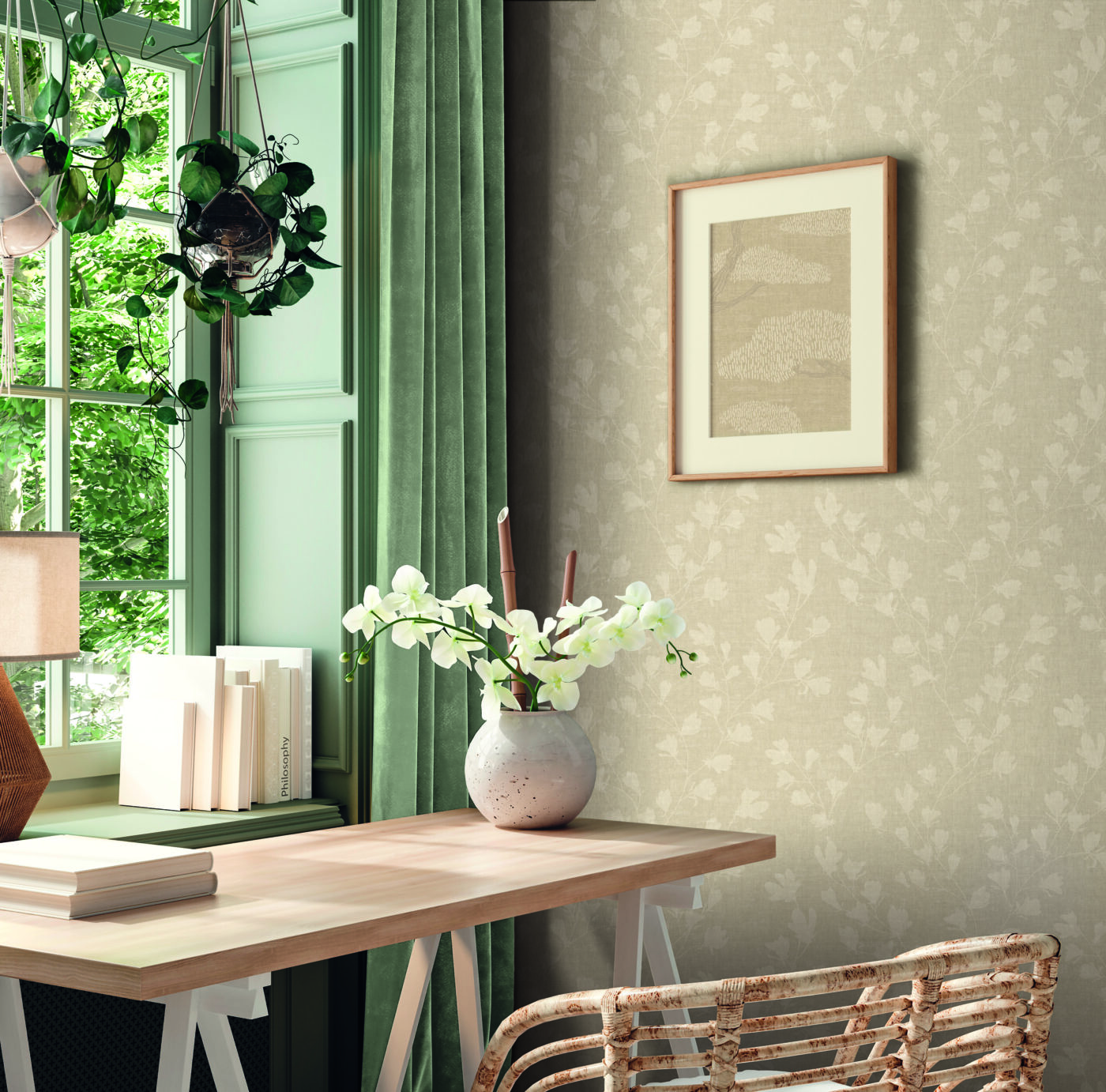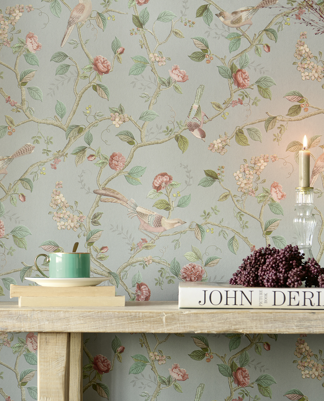 Å ha en hel vegg med et motiv er kanskje ikke den første tanken som slår deg når du tenker på å tapetsere et mindre rom. Dette er faktisk en super mulighet til å få rommet til å virke større ved at det er mer som «foregår» på et mindre areal. I tillegg skaper det «dybde» i den flate veggen. Drøm deg inn i et veggbilde, for eksempel dette fra tapetkolleksjonen Cascading Gardens.