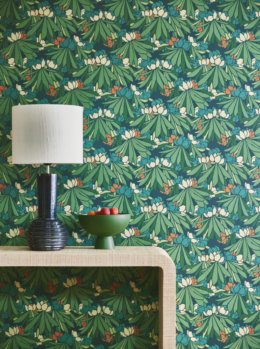 Designet Rhdodendron ble laget i England på 1920-tallet. Dette var en blomstrende periode for tapetindustrien i England. Designet har et geometrisk preg på rhododendron i full blomst, og kommer i 3 ulike farger.
