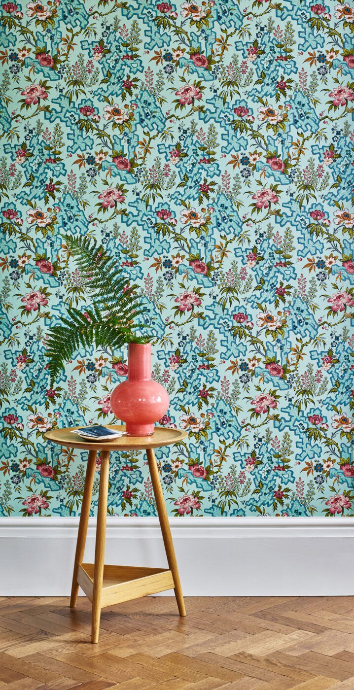 I kolleksjonen Victoria & Albert I ble vi introdusert til Kilburn`s Coral som, i likhet med dette designet, ble laget av William Kilburn. Han lagde begge designene i London mellom 1788 og 1792. Kilburn`s Maze ble opprinnelig designet for tekstil, men er nå en vakker og fargerik tapet i Victoria & Albert II.