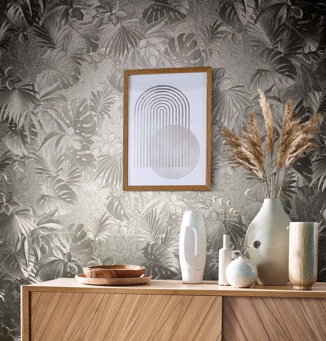 Vil du gå «all-in» så er tapeter med et heldekkende metallisk mønster et godt valg. De reflekterer lys og skaper visuell tekstur, noe som gjør dem ideelle for effekt-vegger, nisjer eller som bakgrunn for kunst og dekor. Kombinert med riktig belysning, tekstiler og møbler, kan metalliske vegger løfte hele interiøret. Det vil gi det et uttrykk som er svært eksklusivt og moderne.